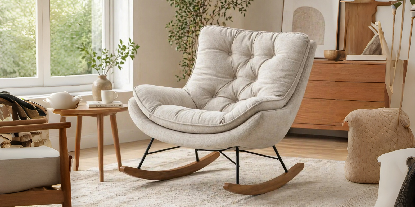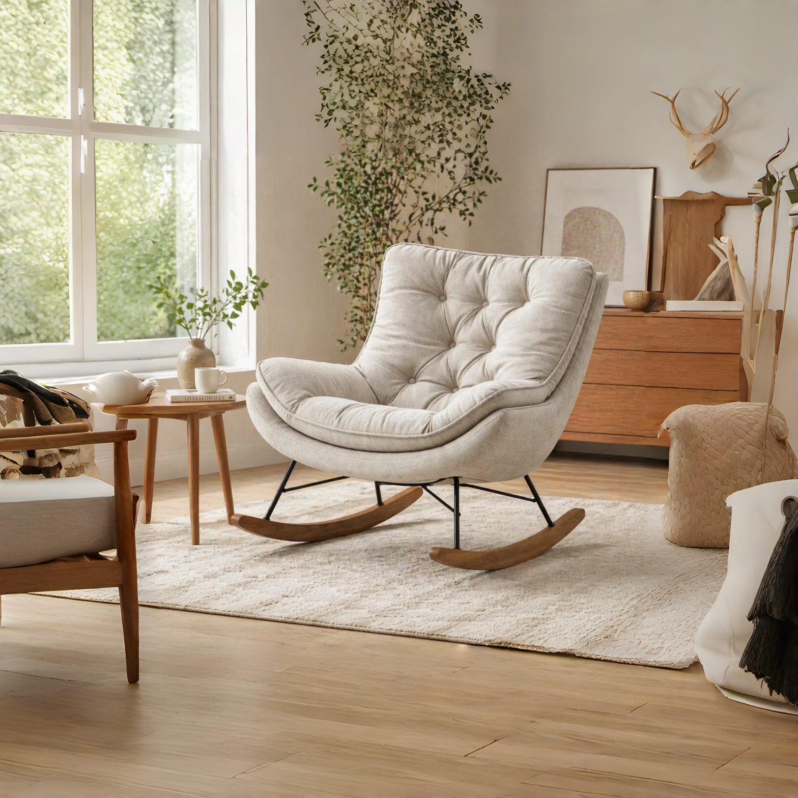 Sillas de comedor de tela beige con respaldo capitoné y patas de madera de roble